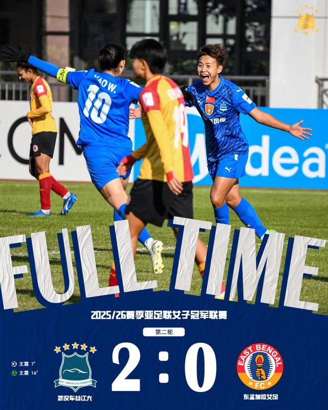 11月20日,2025/26赛季亚足联女子冠军联赛小组赛B组第二轮,武汉车谷江大女足坐镇汉口文化体育中心,以2-0战胜印度球队东孟加拉女足,提前一轮锁定八强席位。